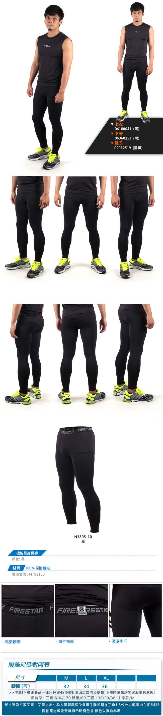 【FIRESTAR】男機能緊身長褲-慢跑 路跑 與NIKE PRO同版型(黑綠) 仍然完好無損,太神啦!!!